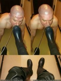 schwule sau dient ledermeister als stiefellecker